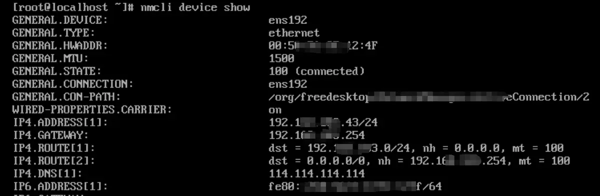 4、查看获取的IP地址 nmcli device show